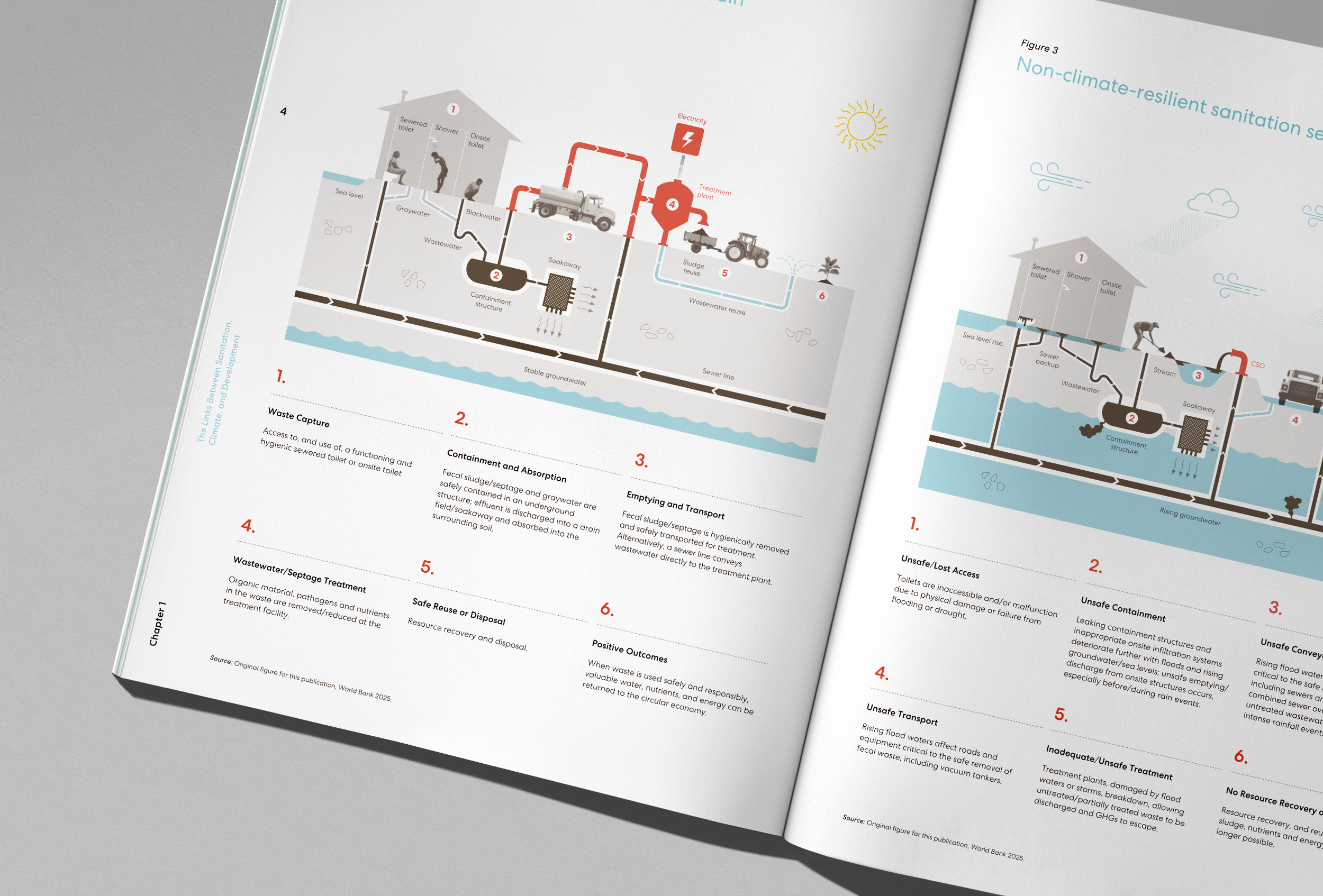 The need to address the world’s growing sanitation crisis, especially among our most vulnerable populations in low- and middle-income countries, has never been more critical. Poor sanitation poses a threat to billions of people worldwide, spreading infectious disease and malnutrition, stunting economic growth, blocking human development, and harming the environment. We know that investments in sanitation positively impact public health, but they also deliver strong economic returns, create jobs, and protect the environmental balance our planet depends on. This two-volume World Bank report begins with an in-depth look at the challenges and benefits of investing in urban sanitation systems for people, economic growth, and the planet, along with detailed policy, institutional, regulatory, and financing recommendations. The second volume—a background paper—presents an analysis of nine global case studies illustrating climate adaptation and mitigation strategies that have been used to accelerate progress towards universal access to safely managed and resilient sanitation systems and services.